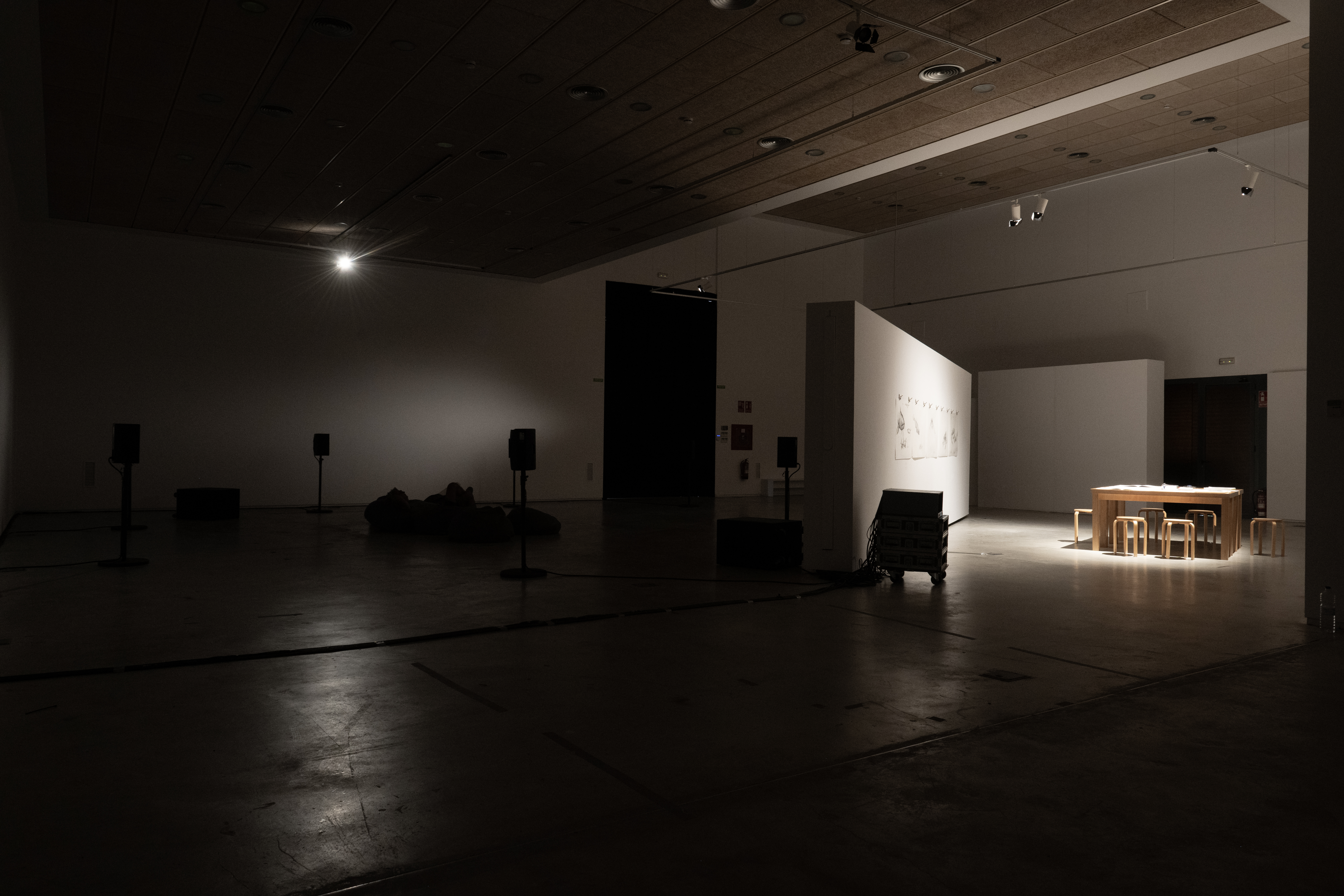 Jana collaborated with Vanessa Balagué for the selection of papers and books that we made available for the audience to read. The table also had paper and pencils for the audience to draw. Jana presented in addition her own drawings of creatures she had met during her residency.