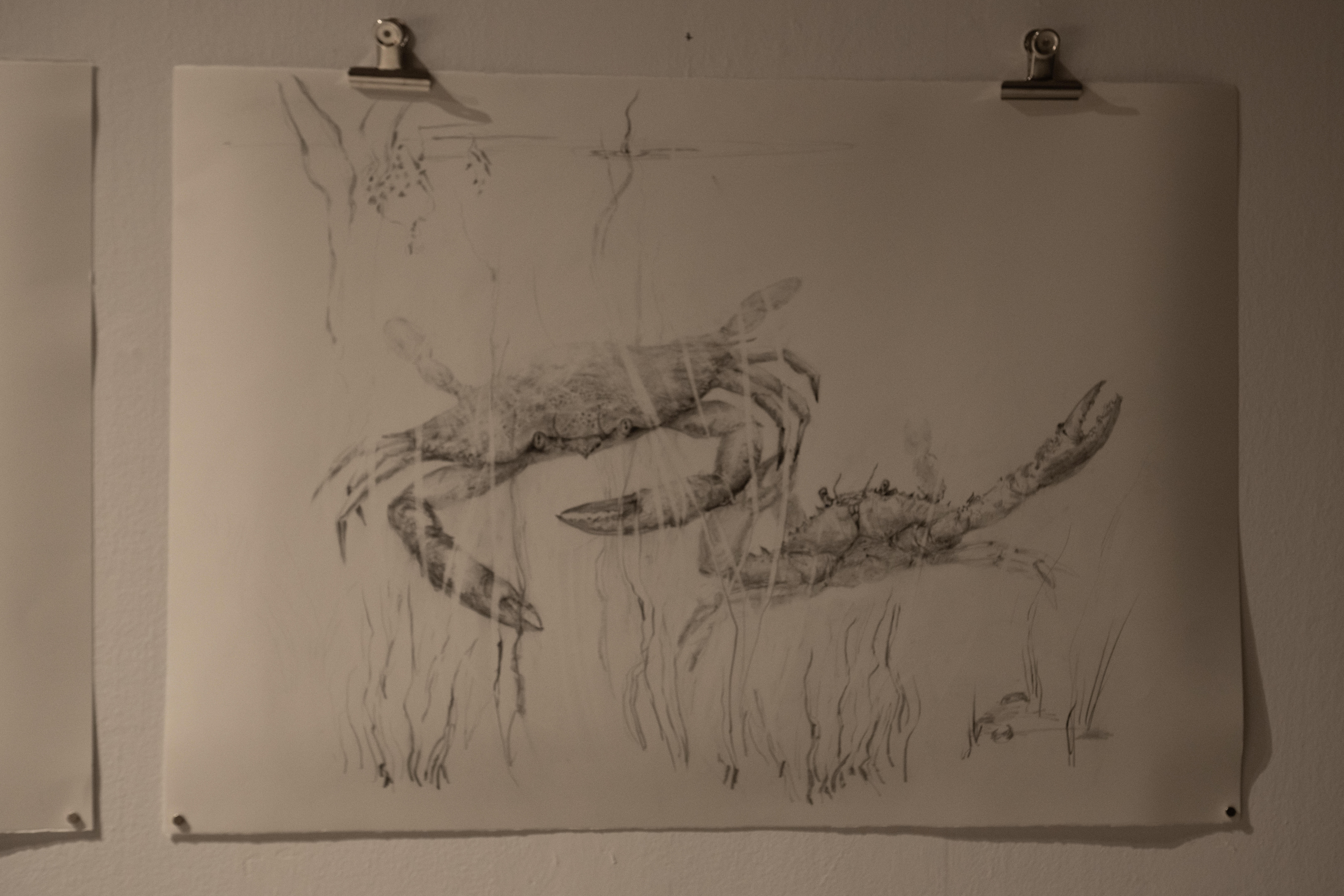 Jana collaborated with Vanessa Balagué for the selection of papers and books that we made available for the audience to read. The table also had paper and pencils for the audience to draw. Jana presented in addition her own drawings of creatures she had met during her residency.